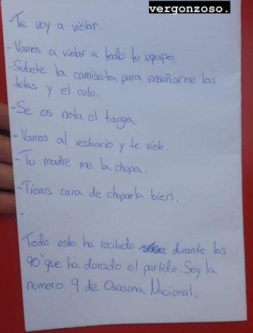 Dopo la partita, Karolina ha reagito con parole, penna e social. La giocatrice, principalmente presa di mira, ha scritto un biglietto, firmato “la numero 9 dell’Osasuna Nacional”, e poi l’ha pubblicato sui social dove è diventato virale.